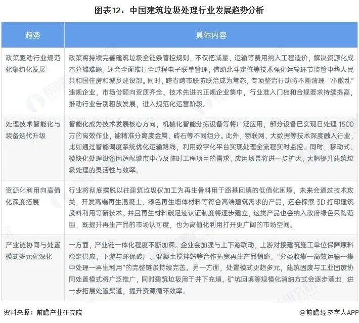 中国建建垃圾处置行业正处于加快转型期,呈现出政策规范化、手艺智能化、操纵高值化和财产链协四大趋向。政策层面不竭完美全链条管控,通过费用纳入工程制价、鞭策市场向集约化、规模化企业集中。手艺方面,智能化分拣、物联网和大数据等手艺普遍使用,挪动式和模块化配备进一步提拔处置效率取矫捷性。资本化操纵正从保守低值回填向高值化标的目的成长,高端再生建材、3D打印使用及碳脚印认证系统逐渐成立,显著提拔产物附加值和市场承认度。财产链协同不竭深化,上下逛企业加强合做,构成完整的收集—运输—处置—操纵系统,同时建建固废取工业固废协同措置、井下充填等多元化模式不竭拓展,为行业供给更高效、更可持续的成长径。